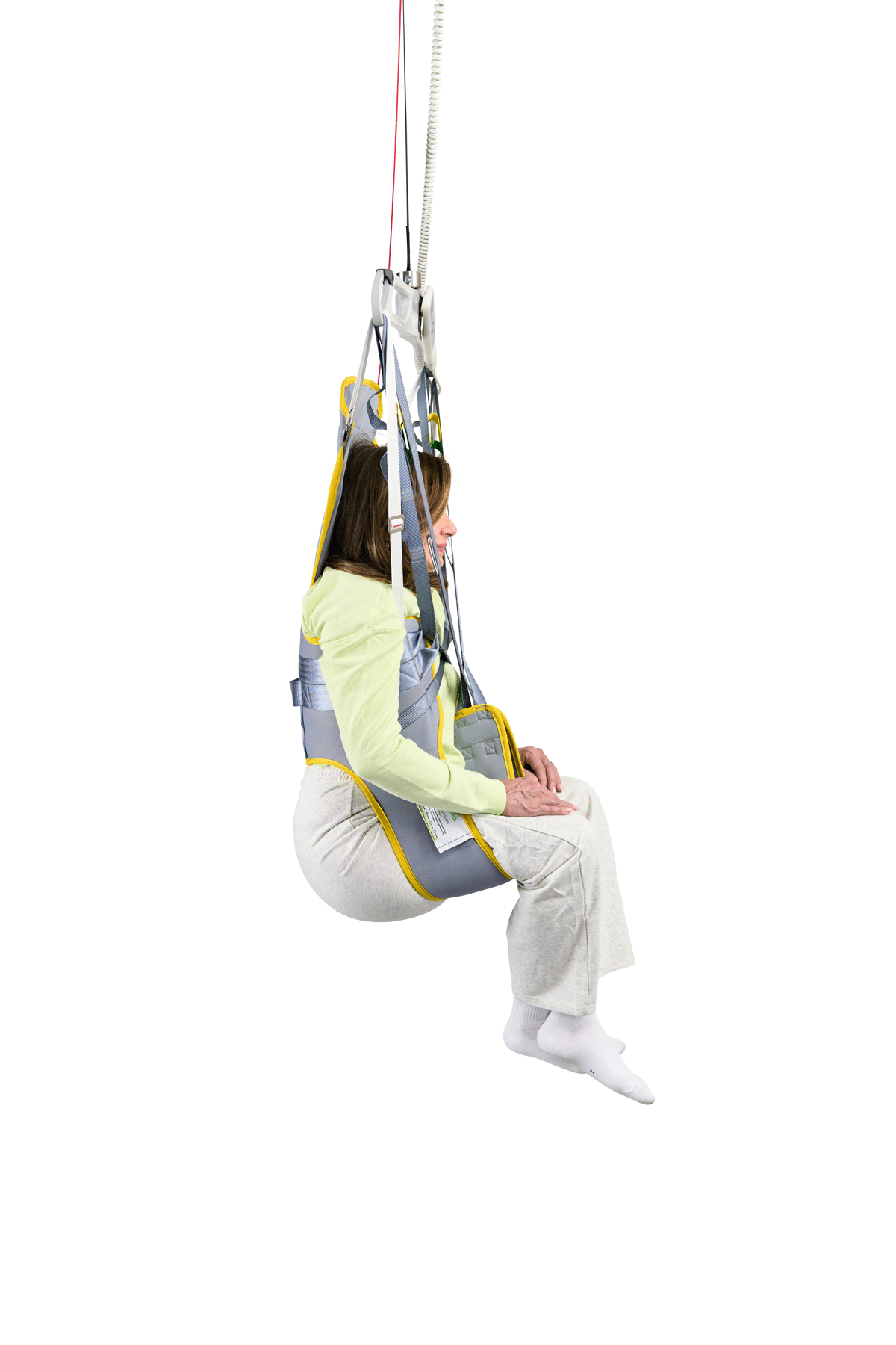 The Easy Access is an advanced sling designed for comfort, stability, and support across a wide range of mobility needs. Its structured design suits users with poor or reduced tone as well as more active individuals. A supportive trunk section and integral head support help provide full-body comfort during transfers, while the enlarged commode opening supports hygiene and dignity. Counterbalance straps help promote smoother, more natural positioning.