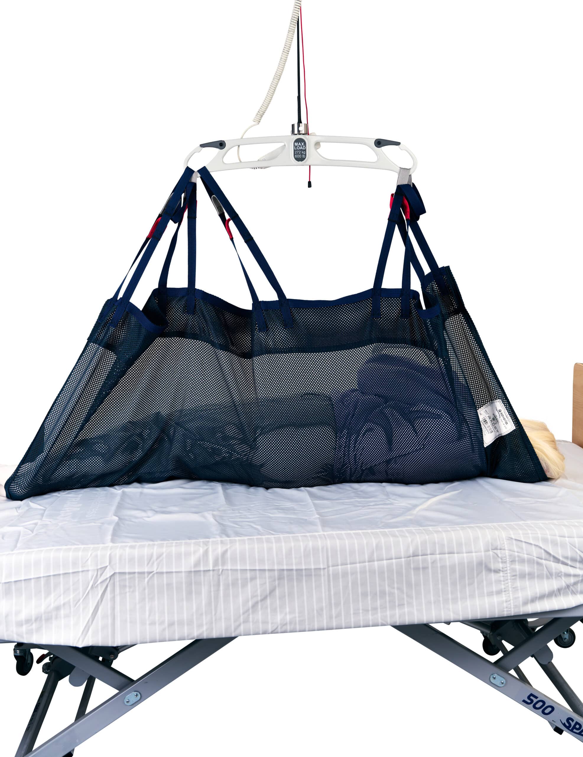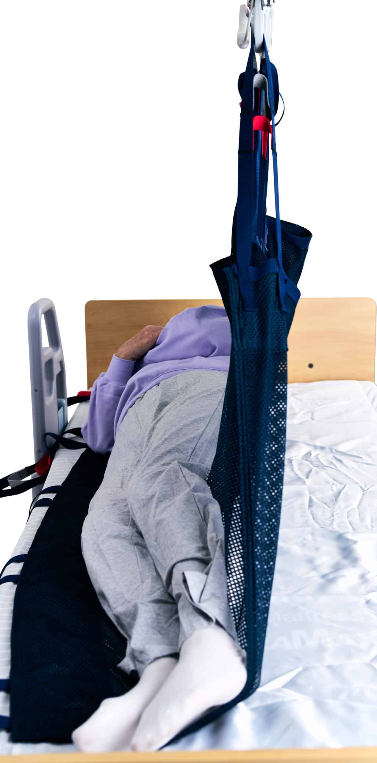 The Positioning Sling supports horizontal lifting or for positioning a user in bed with mobile or stationary lift systems using a two-point spreader bar. It can stay on the bed under the patient between uses, keeping it ready for quick repositioning—while supporting comfort for the patient and reducing caregiver effort.