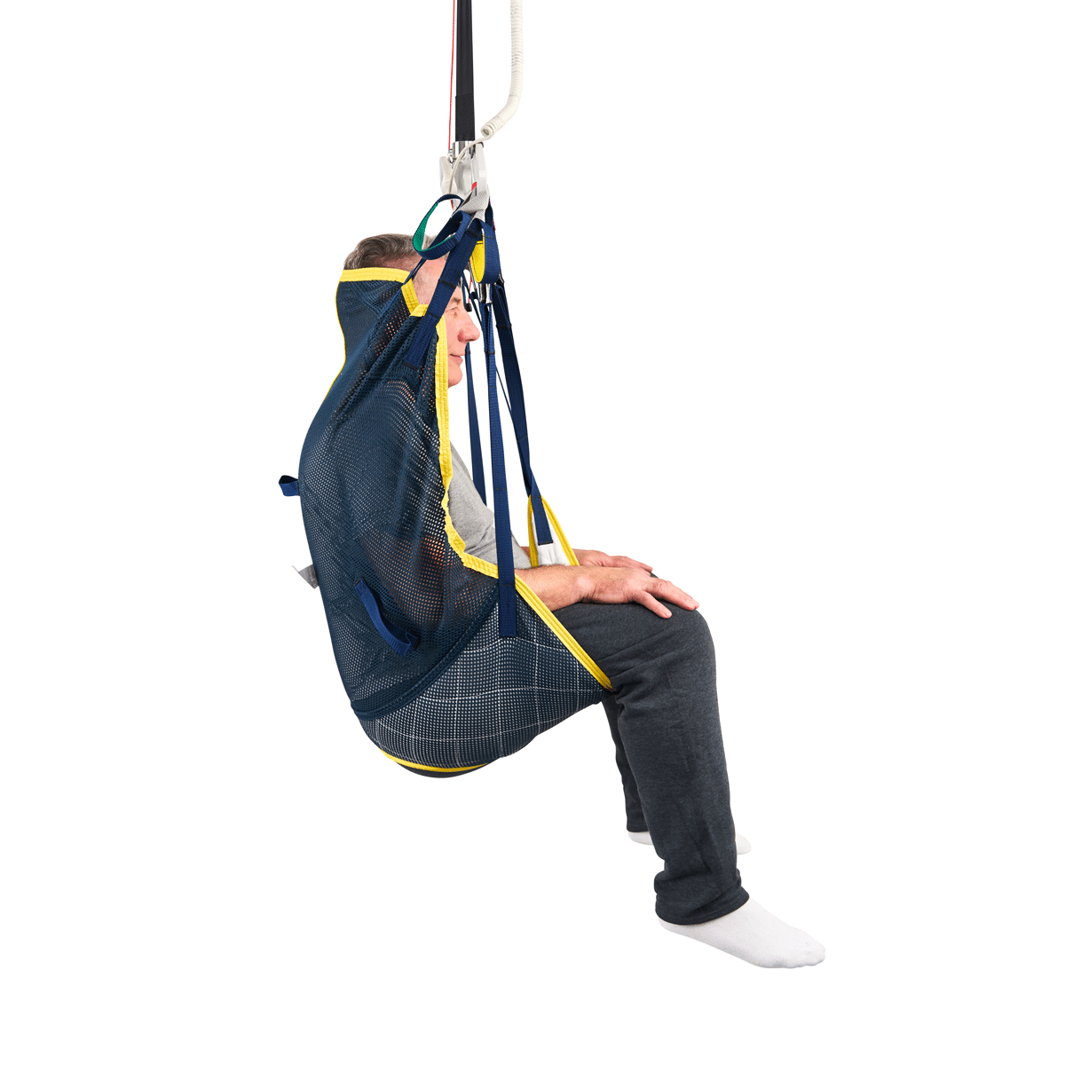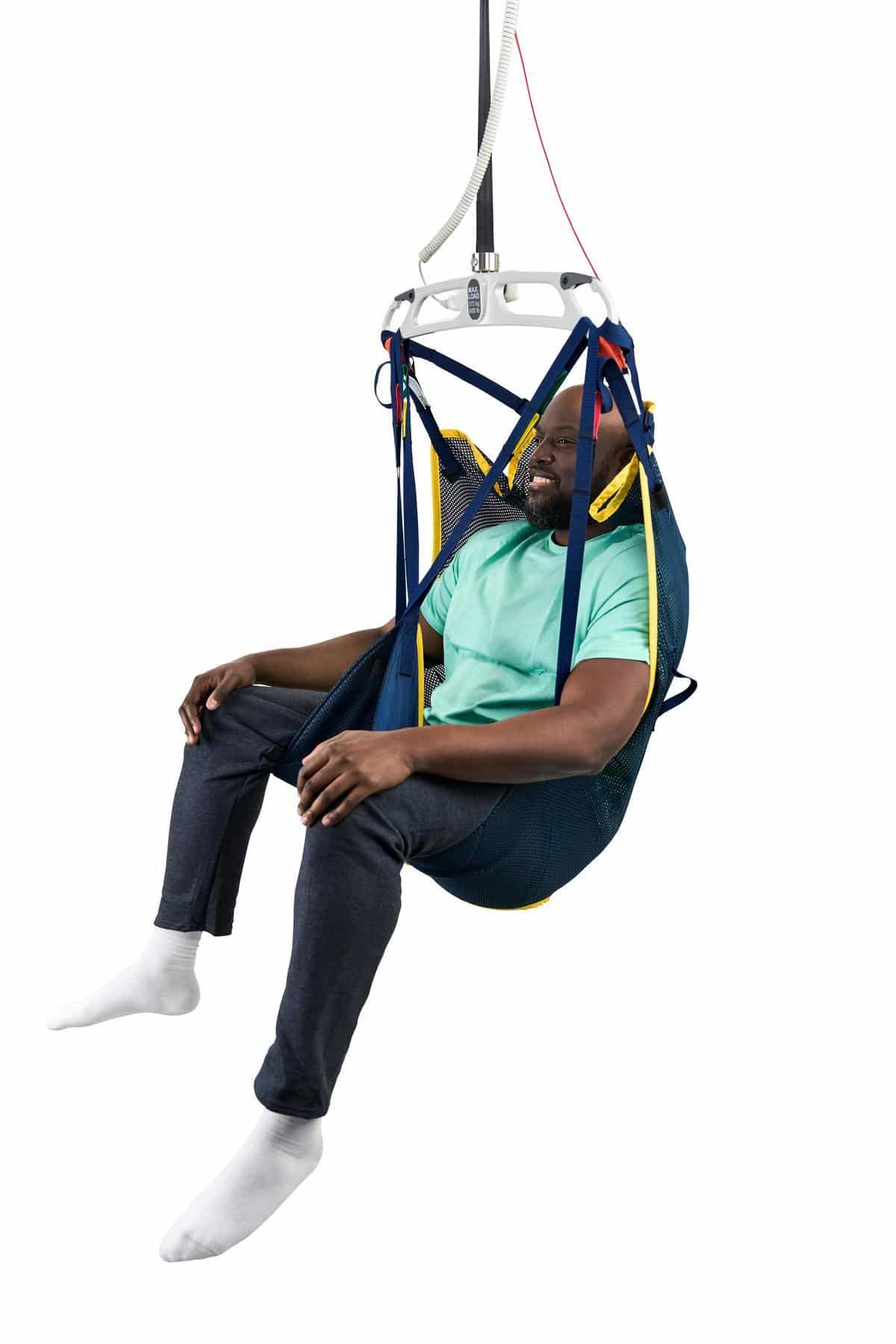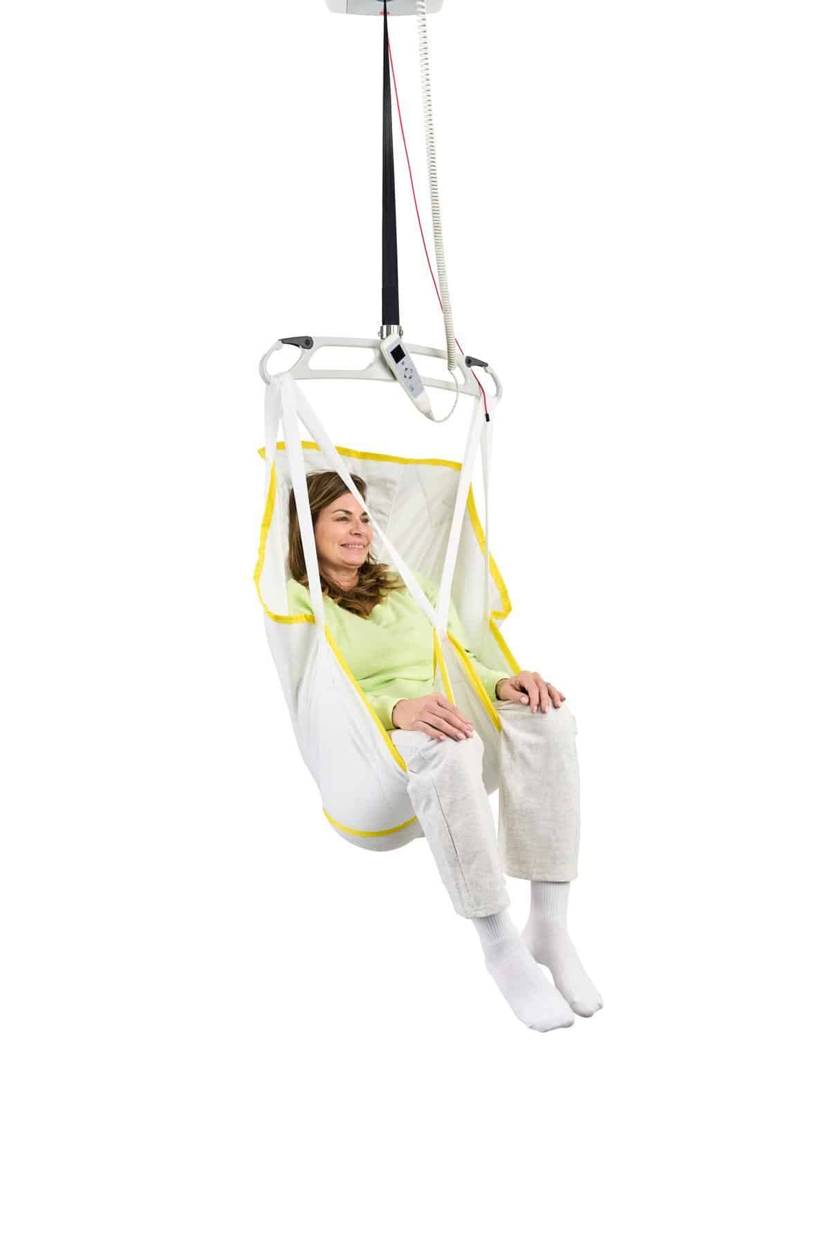 Built-in caregiver handles help guide and stabilize the sling during transfers, improving positioning control and confidence for routine moves.