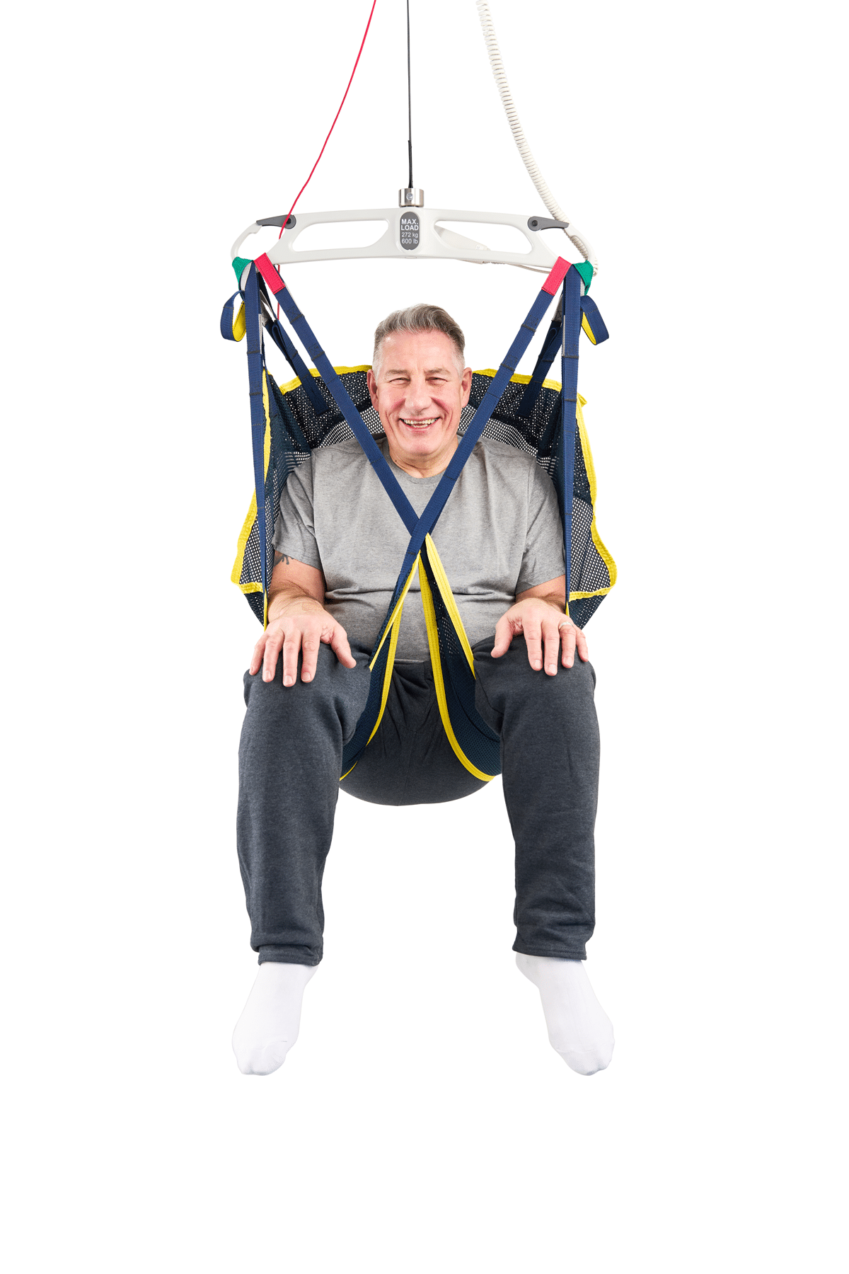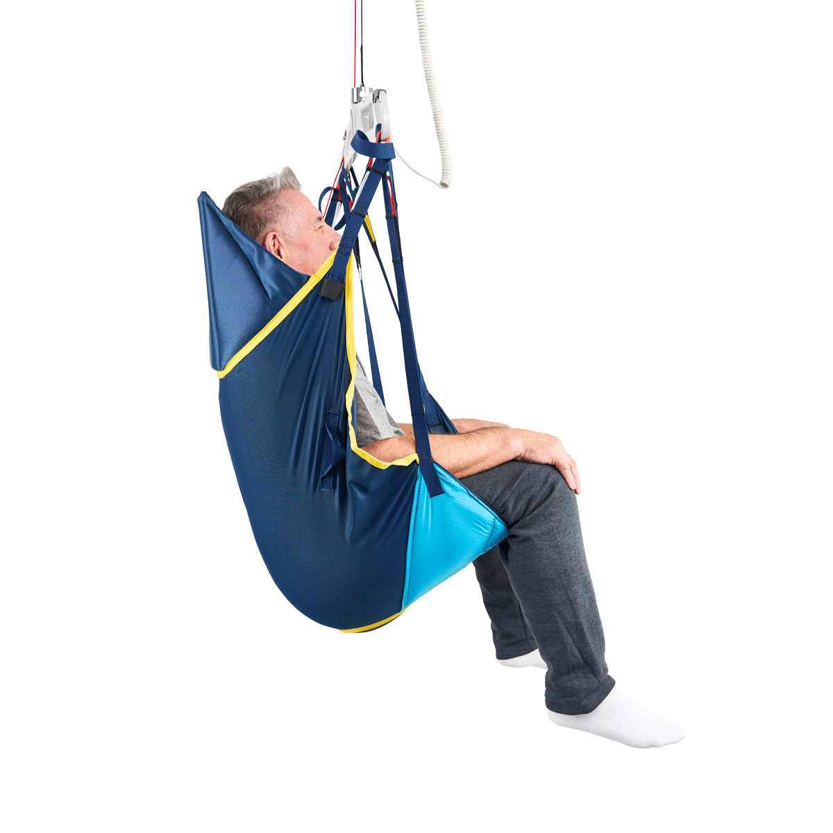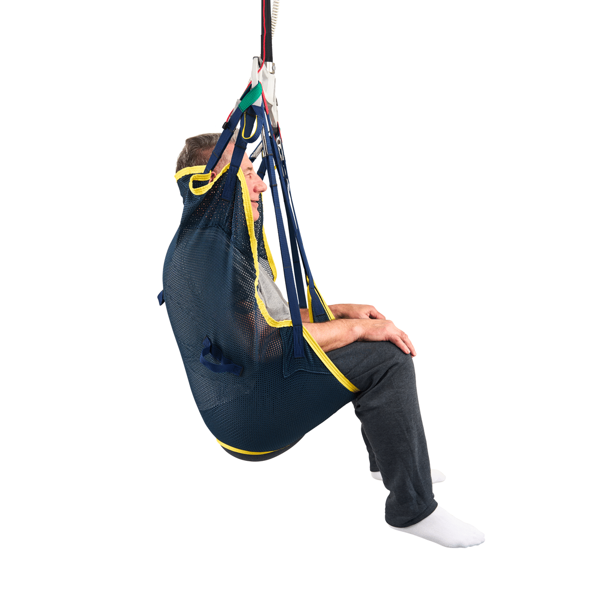 Built-in caregiver handles help guide and stabilize the sling during transfers, improving positioning control and confidence for routine moves.