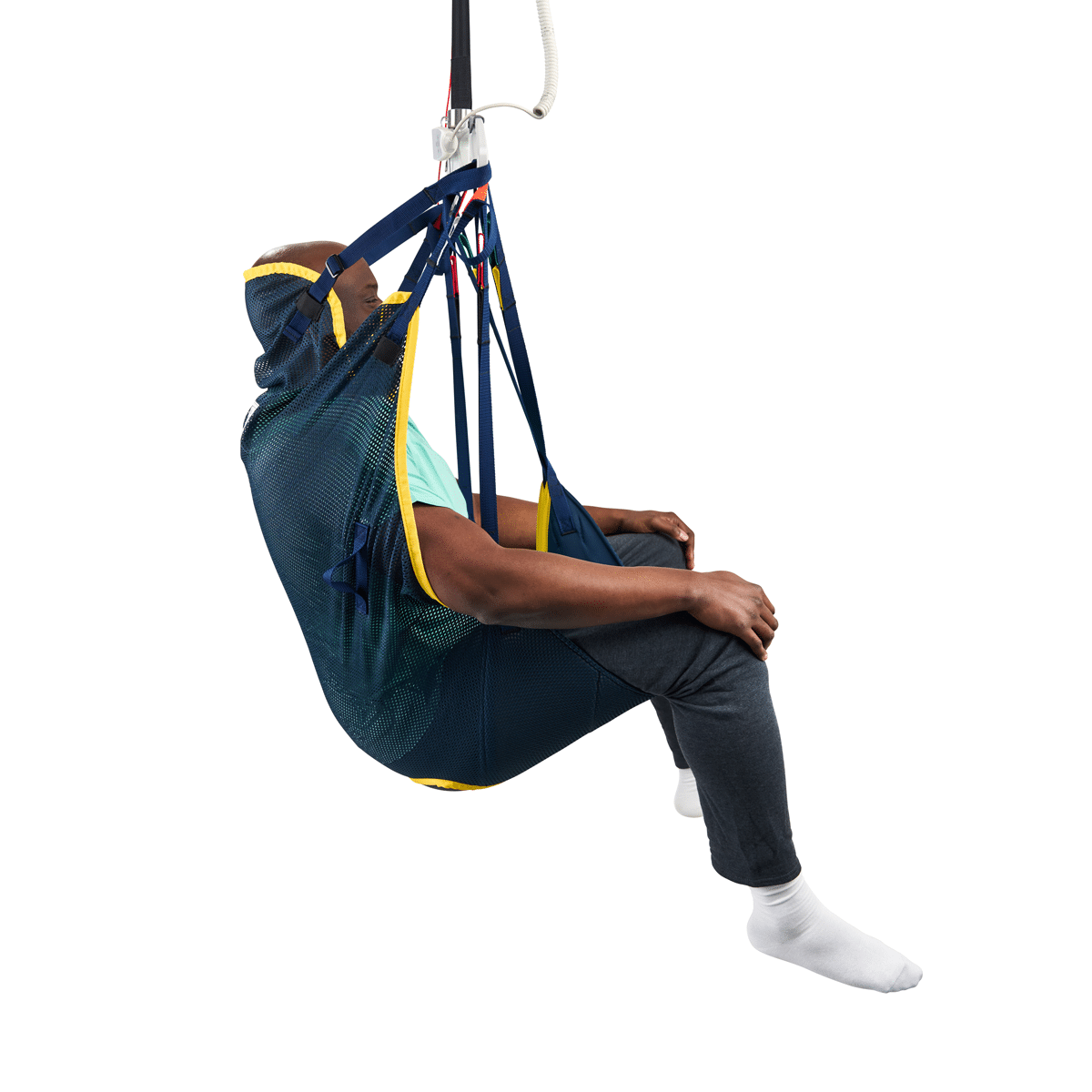 The Universal Sling with Head Support is available in a variety of materials for different patient needs and clinical uses. Structural details may vary by fabric. Please refer to the product data sheet and instructions for use for the selected model.