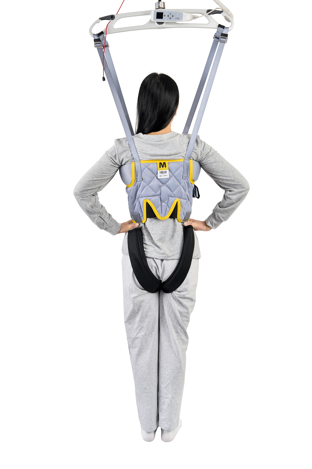 The Walking Sling is a padded, easy-to-apply sling designed to assist individuals during standing and walking activities. With additional underarm padding, adjustable tapes on a coat hanger-style hoist, and groin straps for added support, it helps provide a secure fit, promote proper alignment, and improve comfort during mobility tasks. Some weight-bearing ability is recommended.